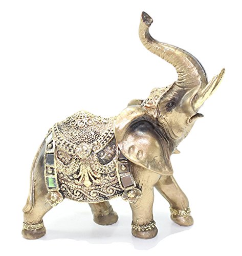 Take your good luck home~ An elegant elephant statue. It symbolizes power, wisdom, strength, fertility, protection of the home!!Color: Brass Gold. Material: Polyresin. Size: Approximately 7"(H) X 6"(L)Antique style statue with the trunks facing...