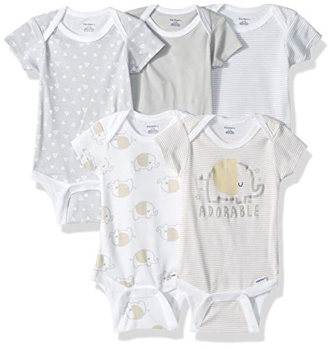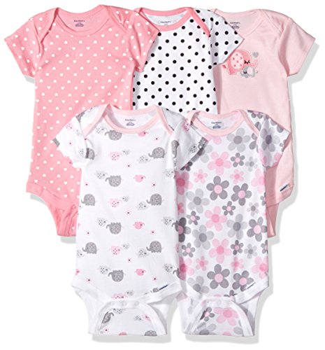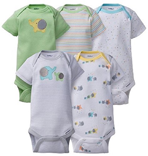 This fun and creative 5-pack of neutral variety Gerber onesies brand short sleeve bodysuits will keep your little one comfy all day or night. The cute patterns and prints are sure to create plenty of smiles. 100 percent cotton rib fabric provides...