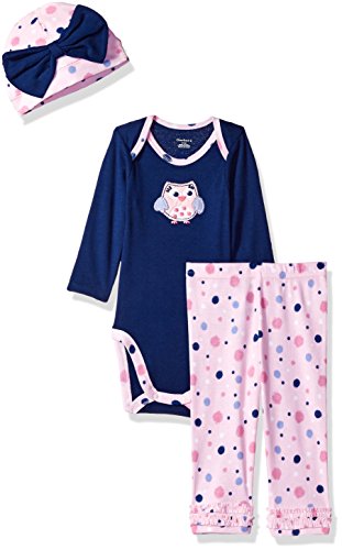 Crafted in super soft cotton, this 3-piece girls' set from Gerber keeps her cute and comfy all day long for play time and nap time. Includes a long sleeve onesies bodysuit, pants, and a cap for a complete, coordinated look right out of the box the...