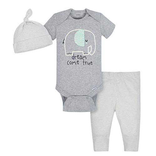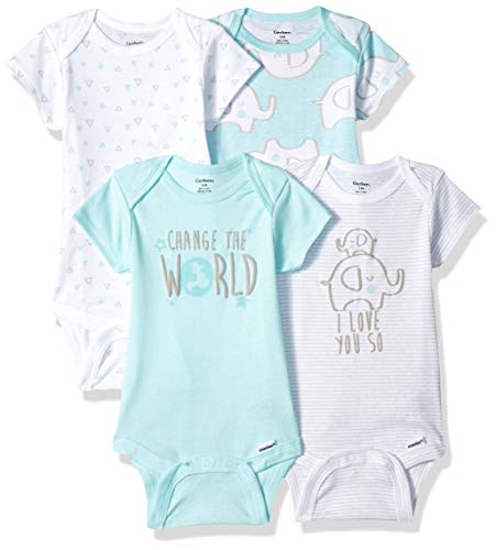 Cheerful elephant puff printing artwork and cute phrases make this gender neutral elephant theme 4-pack short sleeve onesies bodysuits from Gerber A favorite with expecting parents. The soft, 100% Cotton rib fabric is lightweight and breathable...