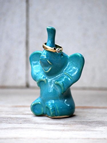 Handmade ceramic elephant ring holder in jade , beutiful on your bed stand or by your sink to keep those precious rings...