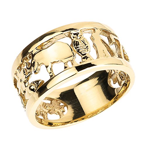 Lucky Charm Ring with Owl, Horseshoe, Seven, Evil Eye and Clover Flower. handmade animal good luck charm jewelryexpertly handcrafted with 14 karat solid yellow gold in stunning polished finishcomes with free special gift packagingmade in the USA...