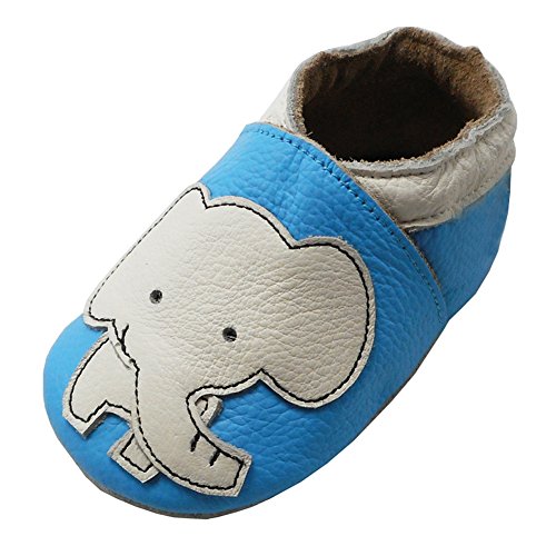 Soft sole baby shoes of brand Mejale, 100% genuine leather, non-slip wide sole is brushed on for comfort and protection. All our shoes have an elastic ankle so they are put on easily and remain on little feet, even though the shoes run bigger than...