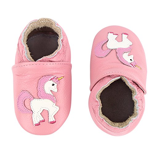 Baby Moccasins Girls Unicorn Pony: Soft suede Sole, Genuine Cow Leather Shoes For Infants, Toddlers and First Walker Babies.Our First Walker Shoes have an elastic ankle so they can be put on easily and remain on little feet, even though the infant...