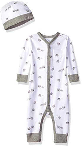 An Amazon brand - This supersoft organic cotton snap-front coverall with matching hat features a contrast pocket and rib cuffs; snap-button placket and snap-button closures help make changing a breeze This supersoft organic cotton snap-front...