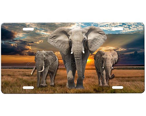 Elephants License plate. High Gloss Aluminum License Plate 6" x 12" Ships From United States!High Quality Artwork!Made out of Durable Rust Proof...