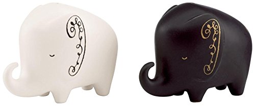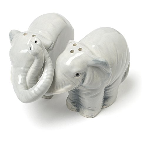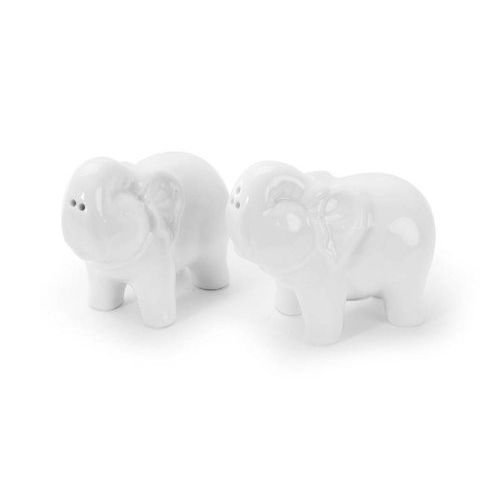 Spice up your tablscape with this charming and fun set of white elphant salt & pepper shakers. Dishwasher safe. Gift boxed. Each shaker measures approximately 3.5"W x 3.1"H. Gift box measures approximately 7.5 x 3.5 x 2 inches. Set of 2 porcelain...