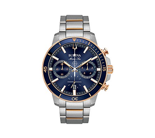 Watch Sizing Guide Elevate your look with this high-performance watch from Bulova®! Stainless steel case. Stainless steel bracelet with fold-over, double push-button release. Round face. Three-hand analog display with quartz movement. Blue dial...