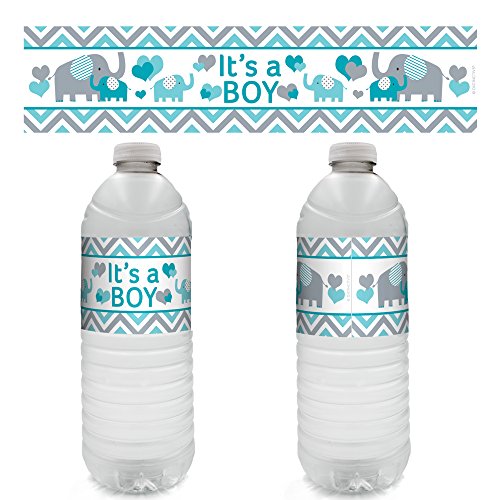 Order includes 20 Waterproof Teal and Gray Elephant Baby Shower Water Bottle Labels. Stick on water bottles for decorative baby shower refreshments. Fits most standard size water bottles, 8.5" x 2" each. Water bottles not included. For best...