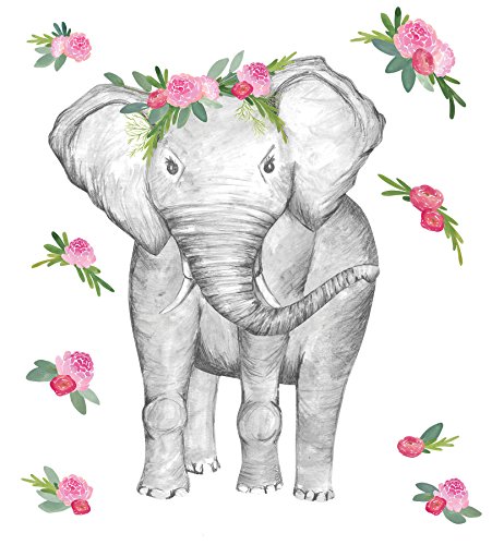 Sporting a pink rose tiara and flirty lashes, Penelope the elephant gracefully swings her trunk amongst vibrant flowers in this sweet wall art kit. With a hand drawn design, these decals have a dreamy and whimsical style. Peel and stick,...