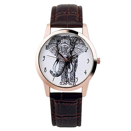 Homim Analog Quartz Artificial Leather Wrist Watch Elephant Desgin Bracelet Watch Brown for Women