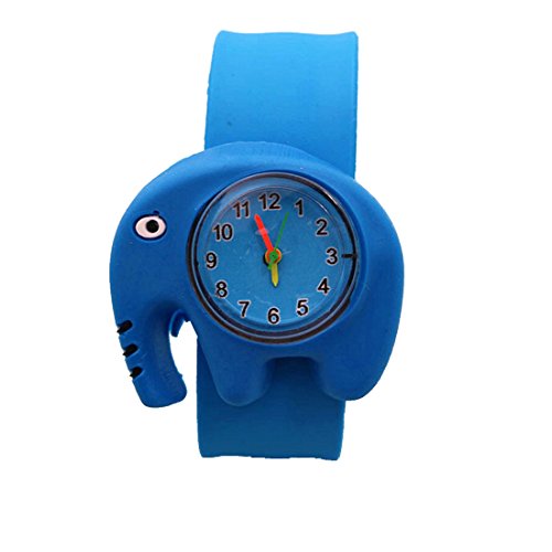 Lovely Kids Watches Cartoon Silicone Children Wristwatch (Blue Elephant)