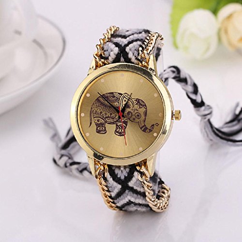 • Package Content: 1PC Women Elephant Pattern Weaved Rope Band Bracelet Quartz Dial Wrist Watch